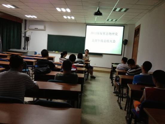 2013年6月30日晚6时,2012级凝聚态党支部书记陈海峰组织全体党员和入党积极分子在研究生部307教室举行了本年度支部第四次“党员民主生活会”。会议主要内容是党支部成员的年度总结。会议中,同学们积极踊跃发言,结合自己的实际情况,总结研究生第一学年的收获与不足,深刻分析了问题存在的原因,同时认真开展了批评与自我批评,进一步明确今后努力的方向。经过探讨,大家达成共识,作为一名学生党员,更应该端正学习态度,规划好时间,多与老师、同学交流,服务同学,时刻以全局利益为重。