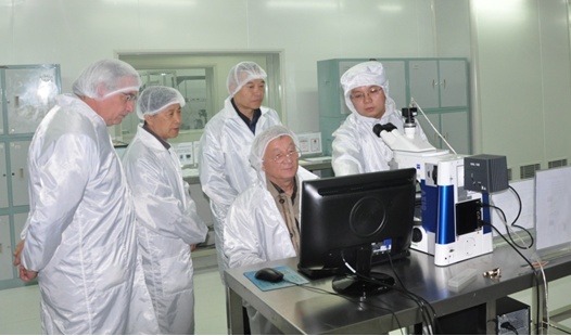 在国际合作处副处长张来明的陪同下,来访客人参观了研发大厦二楼展厅。贵宾们在展板前驻足观看,对我所悠久的历史及科研发展表示了由衷的赞赏。随后,在王立军院士的陪同下,来访贵宾参观了我所发光学及应用国家重点实验室。参观过程中,两位俄罗斯专家热情称赞了我所精尖的科研设备及良好的科研环境并就进一步开展深入合作达成了一致意见。