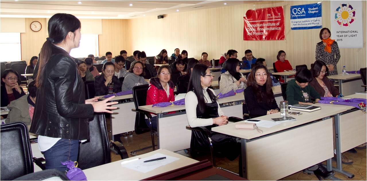 为庆祝2015国际光学年,响应SPIE“WOMEN IN OPTICS”系列活动,长春光机所国际合作处、OSA/SPIE长光所分会联合举办“Rose in Science”关爱女性科研工作者之经验分享交流会。本次交流会特别邀请了我所SPIE资深女性会员、《Light:Science & Applications》(《Light》)常务副主编、全国新闻出版行业领军人才白雨虹研究员做精彩报告。白雨虹研究员分享了其在科研与办刊工作中的经验与感悟,畅谈了女性科研工作者们可能遇到的困惑以及处理方法。