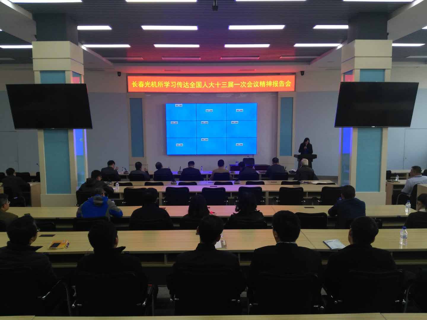 4月4日下午,长春光机所学习传达十三届全国人大一次会议精神报告会在研发大厦一楼学术报告厅举行。出席十三届全国人大一次会议的全国人大代表王家骐院士就主要会议精神和感想体会作了一场精彩的报告。所长贾平,党委书记马明亚,副所长宋志义、张学军、张涛、金宏,所长助理陈俊江、孙守红以及本所各基层党支部书记,本所各级人大代表、政协委员、民主党派负责人80余人参加了报告会。会议由党委办公室主任王晓慧主持。