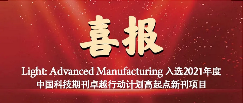 9月26日,中国科技期刊卓越行动计划办公室发布了《关于下达2021年度中国科技期刊卓越行动计划高起点新刊入选项目的通知》。本次全国共有166种新刊申报,最终获批30种,通过率仅为18%。中国科技期刊卓越行动计划领军期刊Light衍生子刊Light: Advanced Manufacturing(英文名简称LAM,中文名《光:先进制造》)经过两轮专家评审,从166个申报项目中脱颖而出,入选高起点新刊项目,将获得50万元项目资助及国内统一刊号(CN号)申报资质。