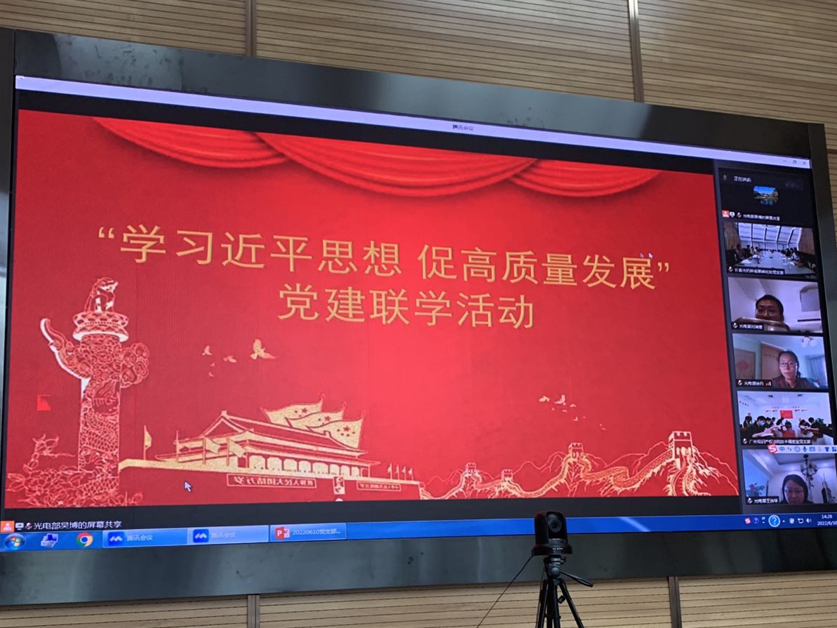 6月10日下午,中科院长春光机所成果转化处党支部联合国家知识产权局专利局光电部第一党支部以及广州知识产权法院技术调查室党支部通过腾讯视频会议共同开展“学习近平思想,促高质量发展”党建联学活动,国家知识产权局专利局光电部党总支书记阙东平,长春光机所党委书记、副所长金宏出席会议,会议由国家知识产权局专利局光电部第一党支部支部书记杜江峰主持,国家知识产权局专利局光电部第一党支部全体党员、广州知识产权法院技术调查室党支部全体党员和长春光机所成果转化处党支部全体党员共计50余人参加本次会议。