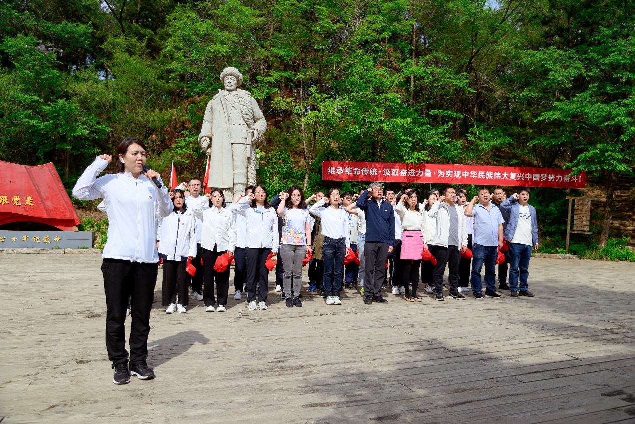 随后,由党总支书记初蓓领誓,全体党员在杨靖宇石像前重温入党誓词。整齐的队伍、紧握的拳头、熠熠的党徽,伴随着每一句誓词,大家再次感受到了共产党员的分量和责任。