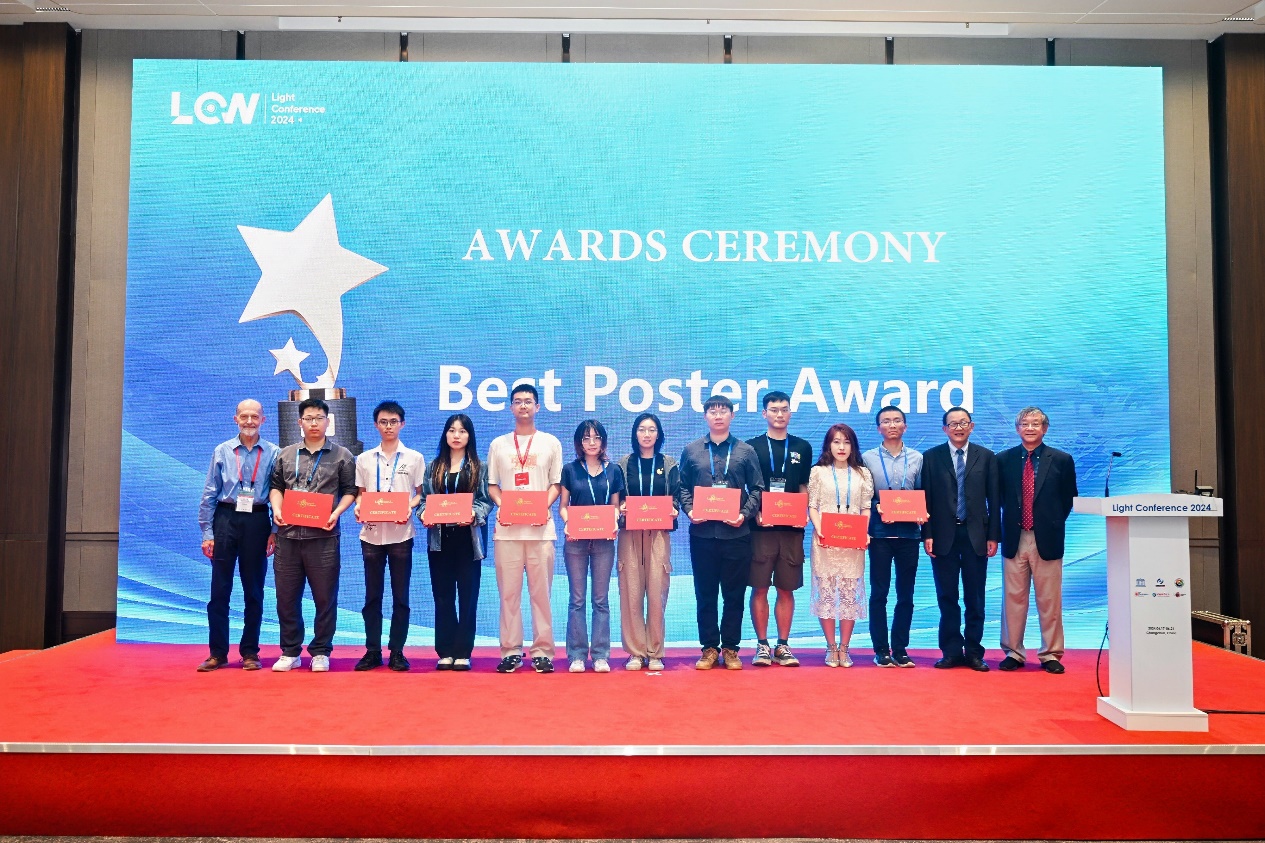 在闭幕式上揭晓了大会优秀论文奖与优秀海报奖并举行了颁奖典礼。 原科技部副部长、Light创刊主编曹健林,中国工程院院士、长春光机所所长、大会共主席张学军为10位优秀论文获奖者代表颁奖;中国科学院长春分院分党组书记、院长、长春光机所党委书记金宏,俄罗斯科学院院士、罗蒙诺索夫莫斯科国立大学教授Alexander Shkurinov,欧洲科学院院士、欧洲科学与艺术院院士、东南大学首席教授李全,德国耶拿大学教授Richard Kowarschik,美国西北大学讲席教授、大会共主席Manijeh Razeghi,Light执行主编、清华大学教授孙洪波为30位优秀海报奖获奖者颁奖。