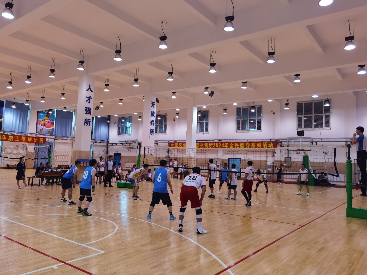 排球场上,男排队员们紧密配合,形成了一道道快速移动的弧线。从场上队员的敏捷移动,到精准的发球和扣球,再到默契的传球和接应,运动员们通过默契的配合和相互支持,展示了团结的力量。通过男排比赛,不仅展现了运动员的个人技能和实力,更展现了我所科研团队的凝聚力和融合度,是对体育精神和团队精神的一种生动诠释。