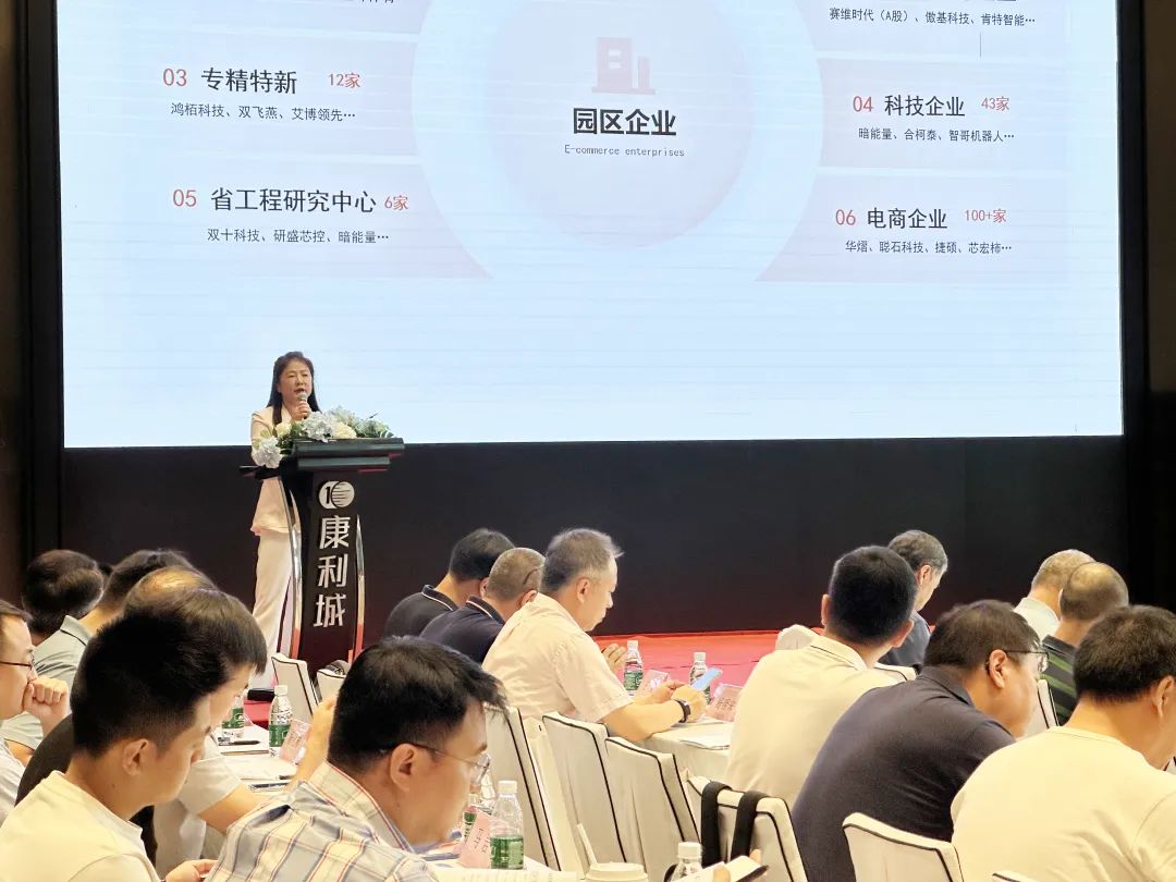 华南校友会会长、康利集团董事长王翠霞致欢迎词,她表示我们将以长春光机所华南校友会和康利城为纽带,搭建起政府、科研院所、高校、园区、企业等沟通对接的桥梁,希望引进长春光机所先进的科研成果在龙岗区落地转化,汇聚优秀科研人才来龙岗发展,为培育孵化出更多高科技企业贡献力量。