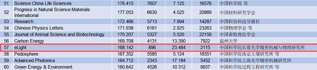 近日,《中国学术期刊国际引证年报》(2024版)发布,《Light: Science & Applications》和《eLight》入选2024年“中国最具国际影响力学术期刊(自然科学与工程技术·英文)”,《光学 精密工程》入选2024年“中国国际影响力优秀学术期刊(自然科学与工程技术·中文)”。这一成绩充分体现了三本期刊在国际光学领域的学术影响力与卓越水平!