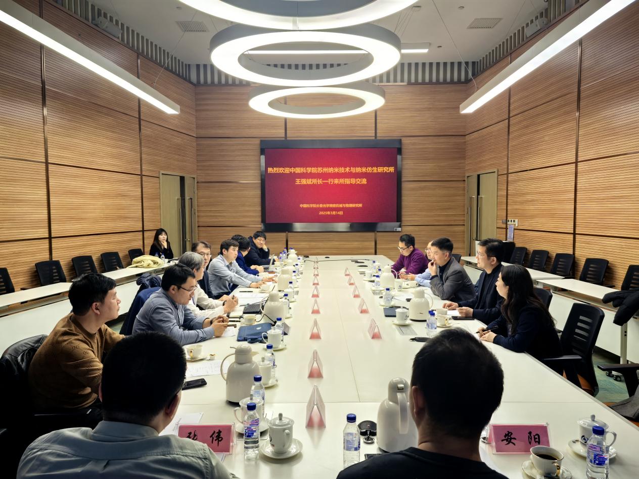3月14日,中国科学院苏州纳米技术与纳米仿生研究所王强斌所长一行来所调研。中国工程院院士、长春光机所所长张学军,副所长黎大兵陪同调研。