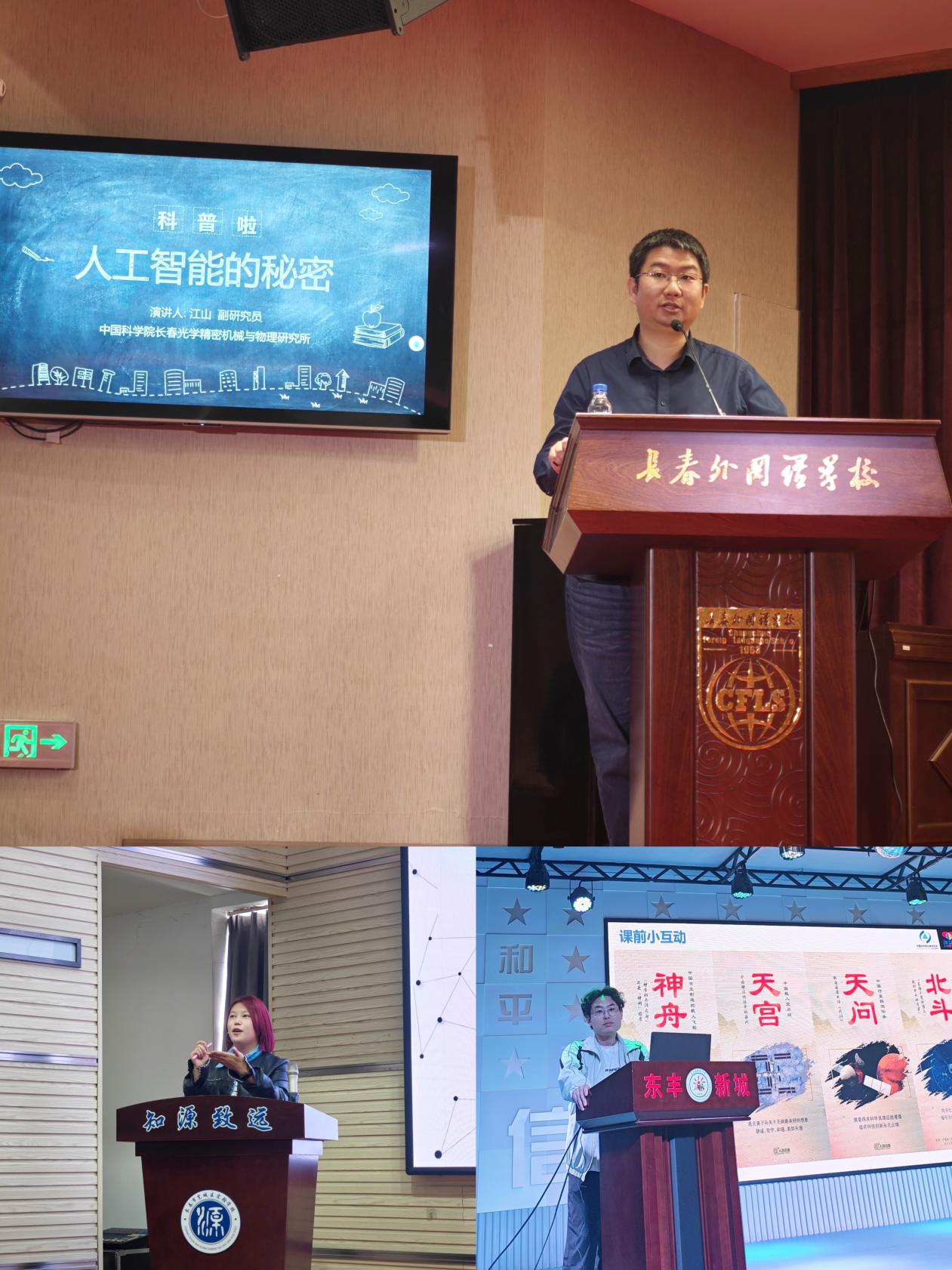 在《人工智能的秘密》报告中,长春光机所青促会小组组长、副研究员江山介绍了当下最热门的智能化设备在安防、医疗、无人驾驶、智能家居等多领域中的应用,让学生对人工智能技术的研究与发展有了更深入的了解;空间机器人中心张敏通过报告《机器人眼中的世界》,从人类与机器视觉的对比切入,深入浅出地讲述了机器视觉的奥秘,展望了未来机器视觉在医疗、救援等领域的应用前景;硕士研究生周振则以《天问》为题,带领学生展开想象,当光学逐渐成为探索宇宙之钥时,共同凝视深空回答古老天问的答案。