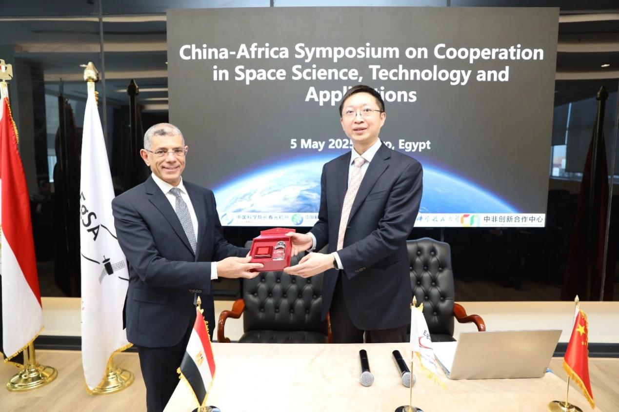 长春光机所国际合作处处长张凌童与埃及航天局局长Prof.Dr.Sherif Sedky互赠礼物
