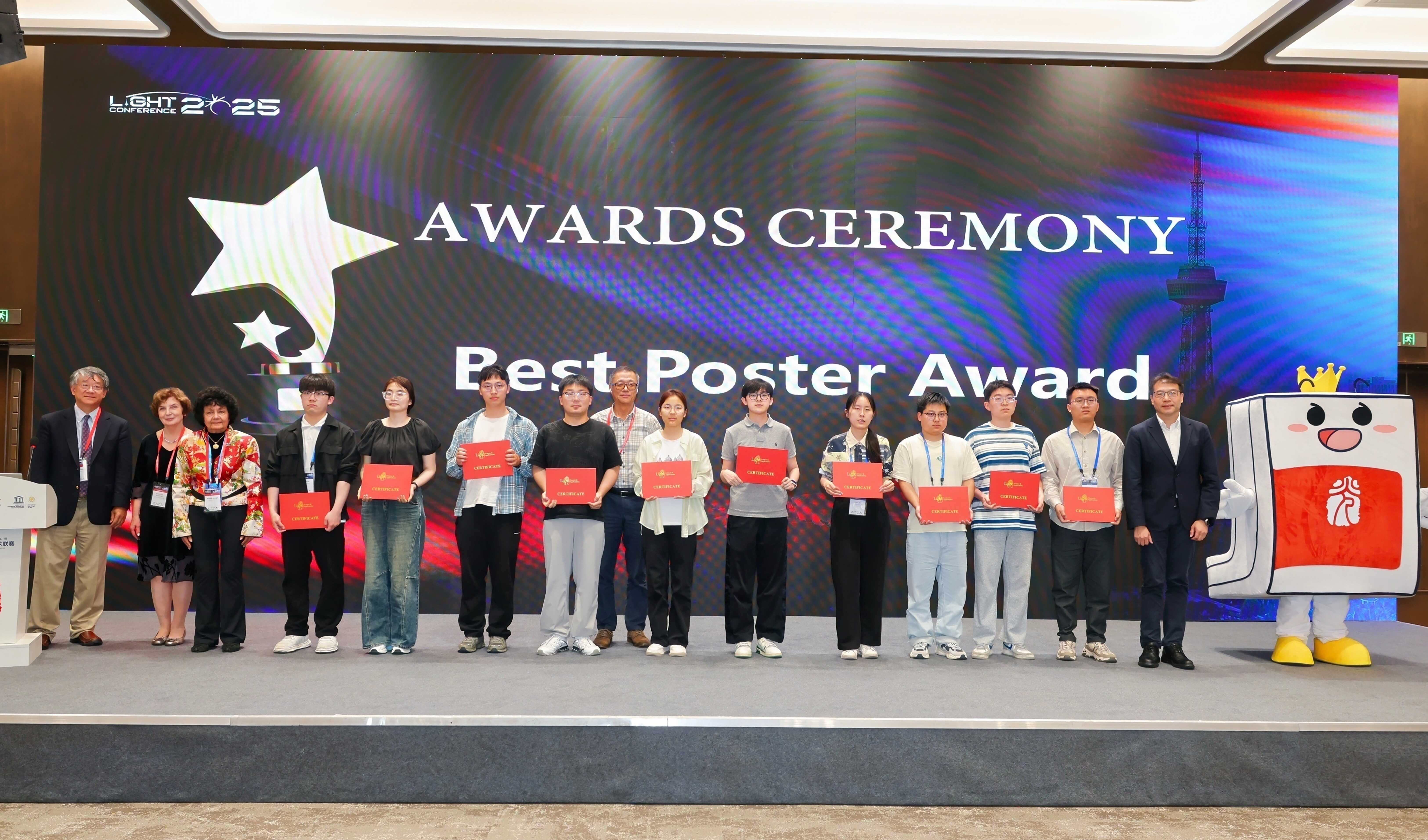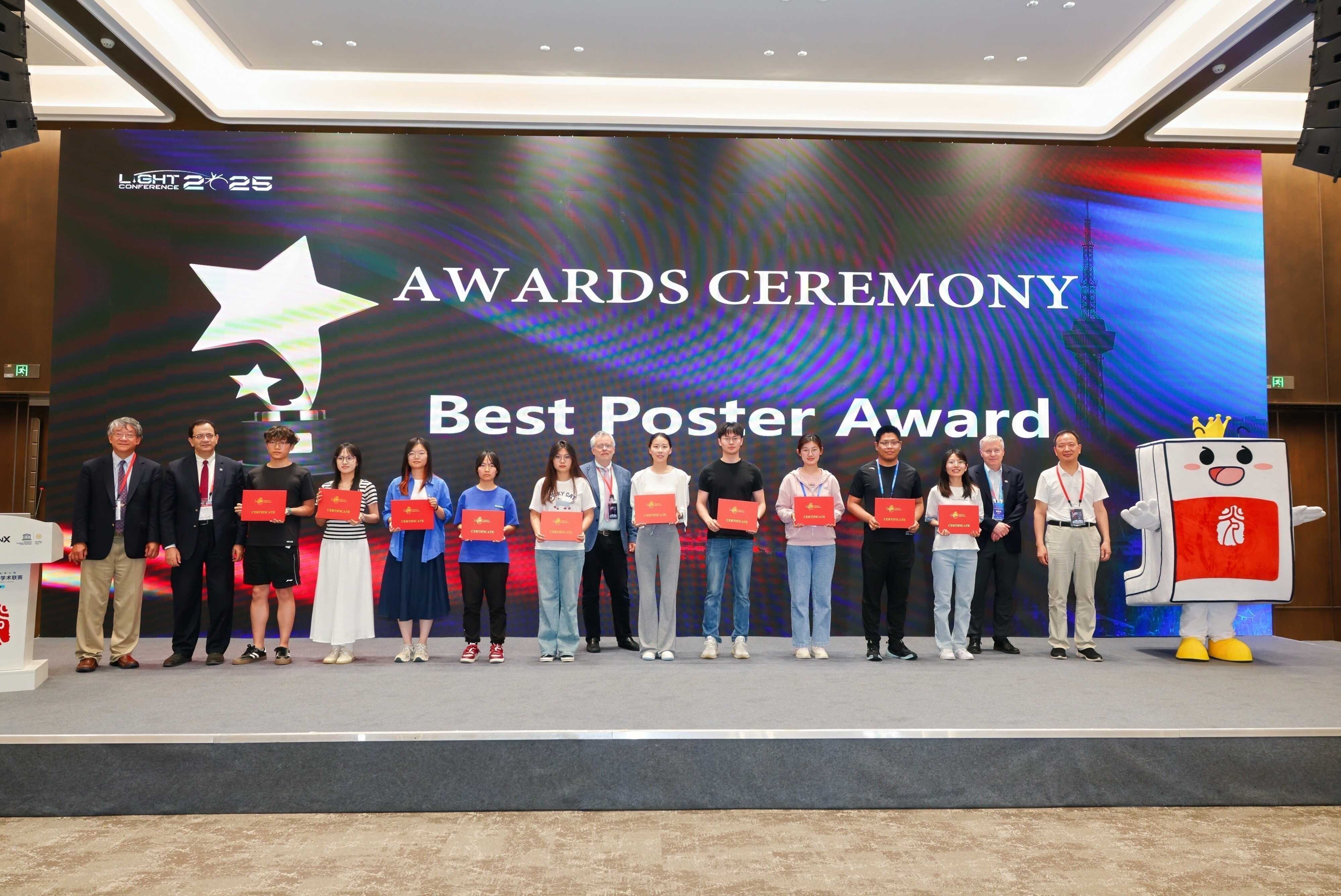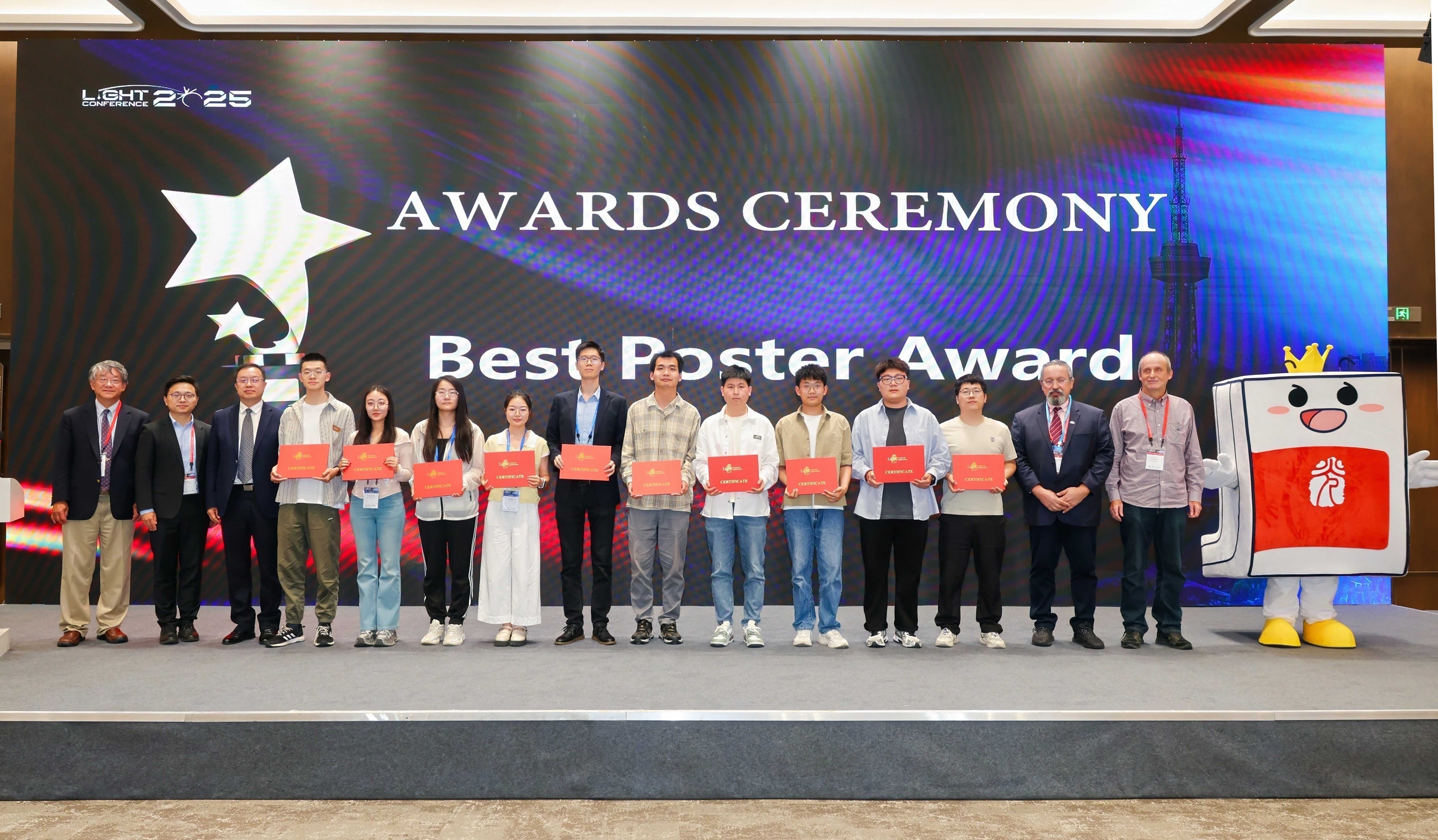 在闭幕式上揭晓了大会优秀论文奖与优秀海报奖并举行了颁奖典礼。 原科技部副部长、Light创刊主编曹健林,俄罗斯罗蒙诺索夫莫斯科国立大学教授Alexander Shkurinov,意大利国家研究委员会应用科学与智能系统研究所研究主任、教授、大会共主席Pietro Ferraro,中国科学院长春光学精密机械与物理研究所(以下简称长春光机所)所长、大会共主席张学军,美国西北大学讲席教授Manijeh Razeghi,波兰华沙理工大学教授Małgorzata Kujawińska,美国南佐治亚大学教授王笑军,中国科学院长春分院分党组书记、院长、长春光机所党委书记金宏,德国莱布尼茨汉诺威大学讲席教授、大会共主席丁飞,法国巴黎高等电子与电工技术工程师学院教授Tarik Bourouina,德国德累斯顿亥姆霍兹鲁森道夫中心教授Harald Schneider,广东工业大学教授秦玉文,瑞士洛桑联邦理工学院教授、大会共主席Luc Thévenaz,荷兰代尔夫特理工大学教授Paul Urbach,埃及艾因·沙姆斯大学教授Diaa Khalil分别为10篇大会优秀论文获奖者代表和30位优秀海报奖获奖者颁奖。
