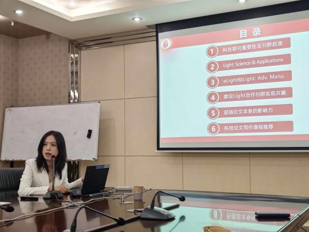 12月3日下午,Light学术出版中心(简称Light中心)主任张莹、副主任郭宸孜、总编辑李耀彪、品牌运营部主任袁境泽一行走进国家光栅制造与应用工程技术研究中心(简称国家光栅工程中心),成功举办Light中心品牌培训讲座。本次讲座吸引了光栅中心众多师生积极参与,现场气氛热烈,交流深入。