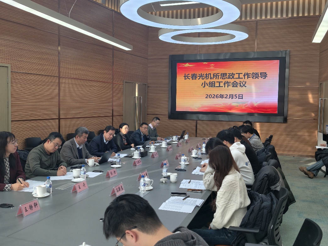 2026年2月5日,长春光机所研究生思政工作领导小组工作会议在学术交流中心第三会议室召开。长春光机所党委书记、副所长金宏,副所长王建立、党委委员张舸、党委办公室党务主管管坐辇、研究生部主任褚明辉及研究生部全体老师和学生骨干三十余人出席会议。