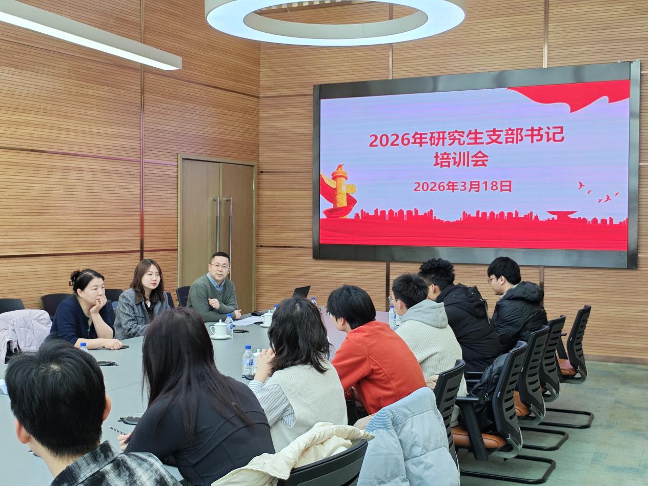 为进一步加强研究生党支部建设,提升新任学生党支部书记履职能力,推动党务、团务和学生管理工作有序开展,3月18日上午,研究生部党总支部召开2026年研究生党支部书记培训会。研究生部党总支书记李树军、学生主管王檬檬、所团委书记张译心、学生党支部书记和委员共计20人参加活动。