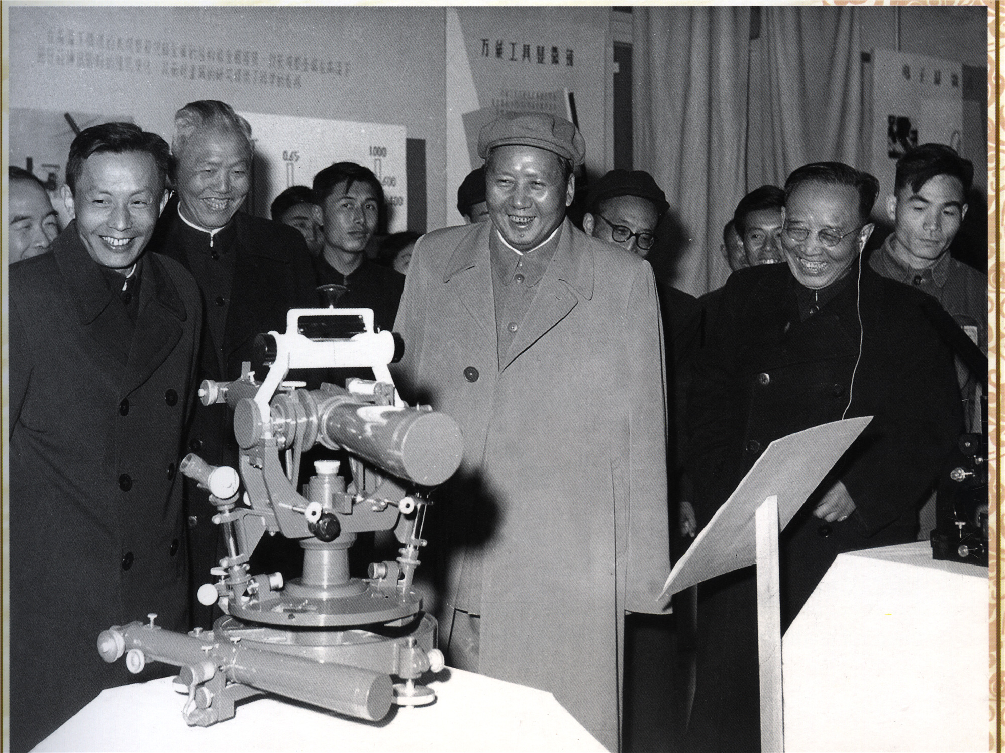 1958年10月27日,毛泽东主席在北京参观长春光机所科研成果