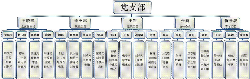 2.2落实每位党员在创先争优工作中的责任,每位支委都负责几位党员,每位党员都负责几位群众,使全体党员成一整体,使全公司员工成一整体,这为构建党员的整体形象,奠定了基础,为创先争优工作的开展,形成一整体的氛围。此网络图已公布于全公司知晓。