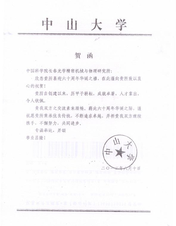 | 中山大学贺函 |
