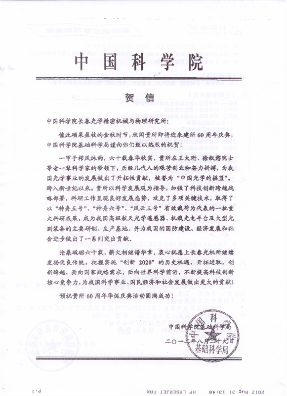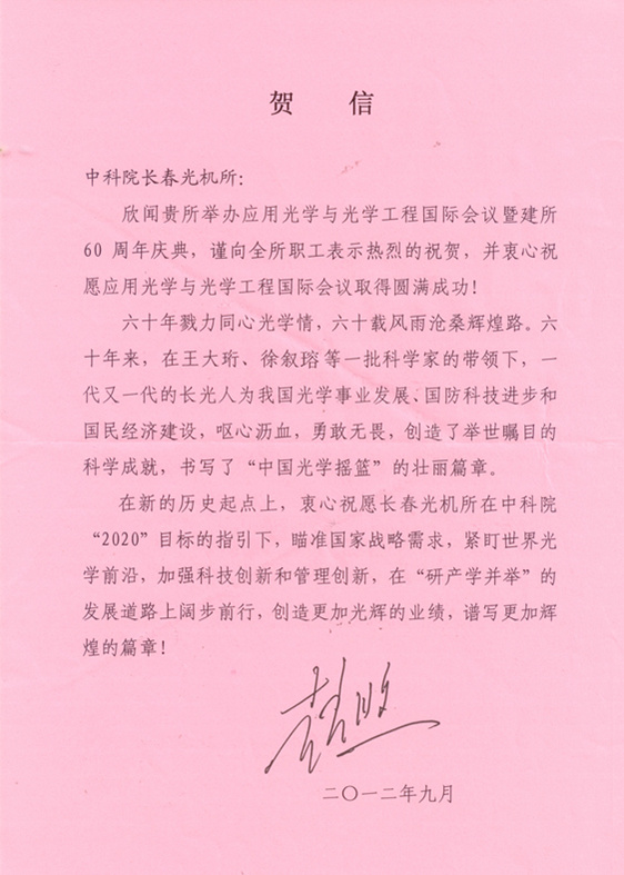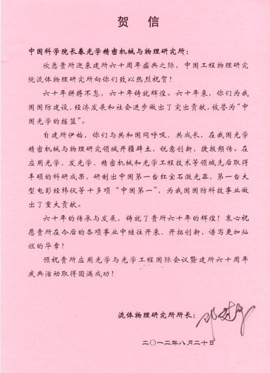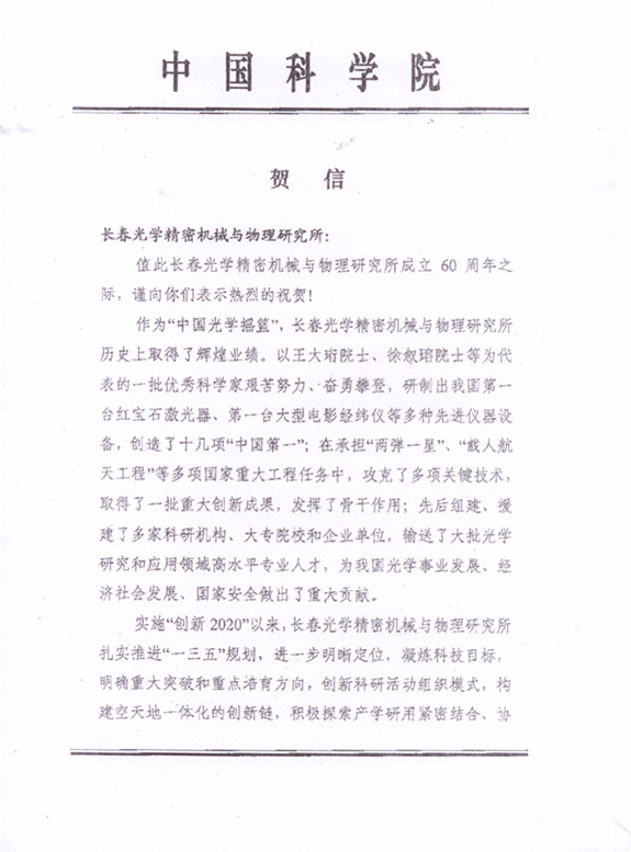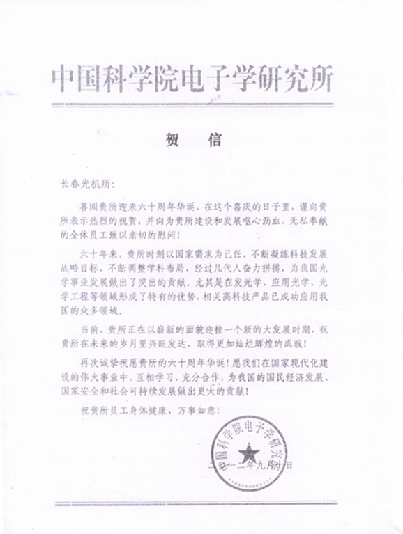 | 中国科学院电子学研究所贺信 |