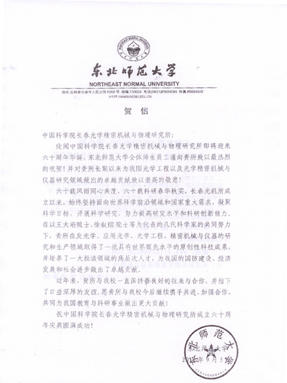 | 东北师范大学贺信 |