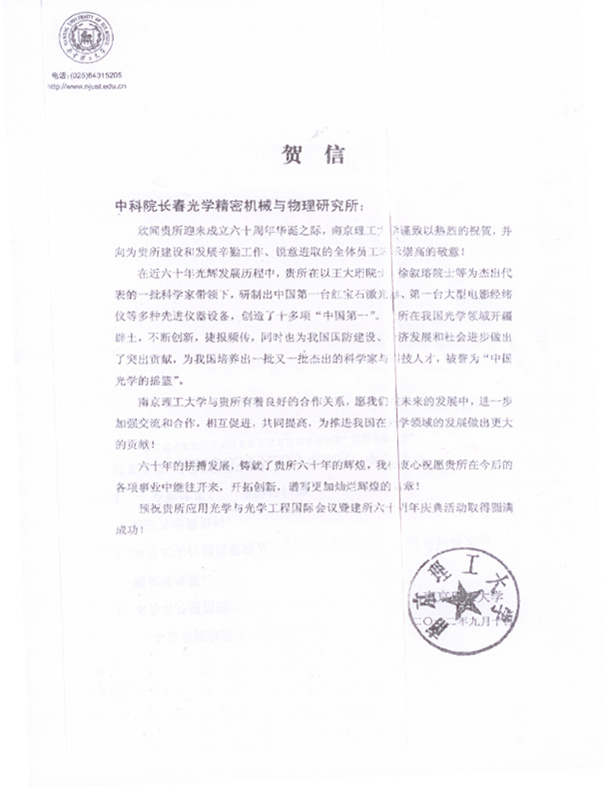| 南京理工大学贺信 |