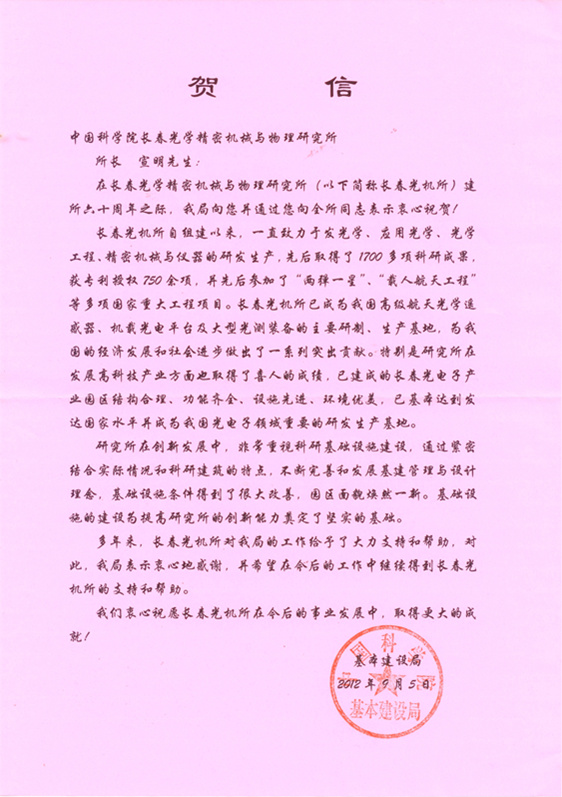| 中国科学院基本建设局贺信 |