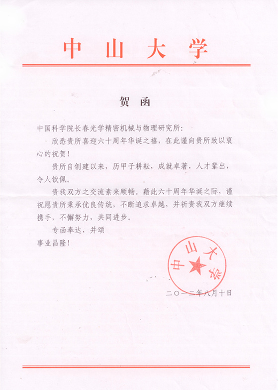 上一篇:中国科学院上海光学精密机械研究所贺信