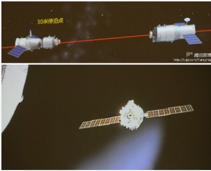 扬子晚报说:“神舟九号飞船与天宫一号目标器成功完成对接环接触,那一瞬,刘洋脸上传来微笑。据了解,整个对接的瞬间相当于每小时五公里速度撞墙上的感受。”