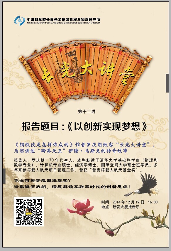 以创新实现梦想--《钢铁侠是怎样炼成的》作者做客“长光大讲堂”
