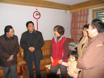图为李申学(左二)等领导同志到家中看望路长琴(左三) |