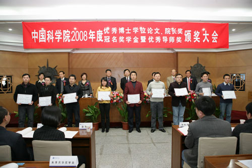中国科学院院长奖设立于1989年,面向全院各研究生培养单位和中国科学技术大学,是对中国科学院在学研究生的最高奖励。中国科学院院长奖分为院长特别奖和院长优秀奖两种,院长特别奖已成为大家公认的中国科学院优秀研究生的标志。今年共评选出院长特别奖获得者20名(我所1名:曹召良),优秀奖获得者200名(我所2名:李文昊,吴能伟)。截止2008年,20年间累计评选出336名院长特别奖获得者、2627名院长优秀奖获得者。这些获奖者大都已成为我院、高校和其他科研单位的业务骨干,有的已经当选为院士。