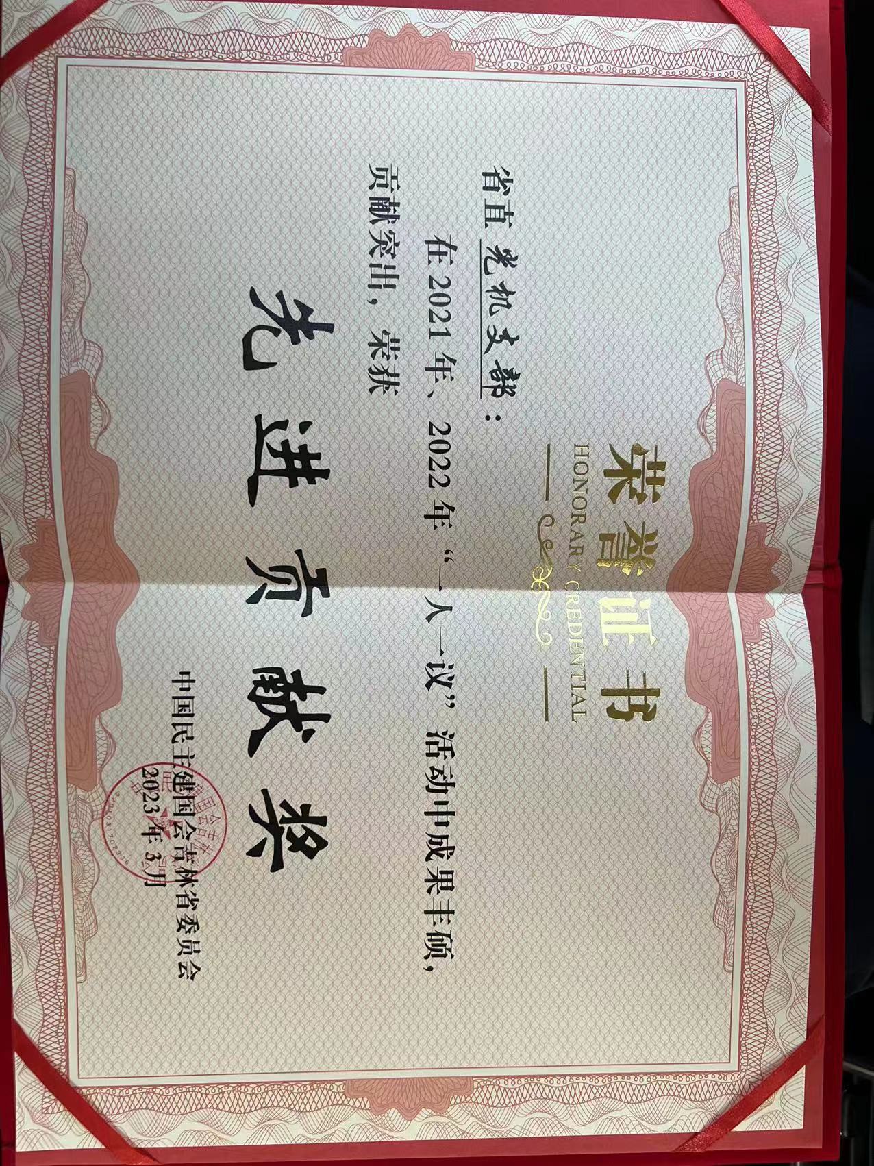 近日,民建吉林省直工委2021、2022年总结表彰大会隆重举行。会上,民建吉林省直工委对2021、2022年度表现突出的基层组织和先进个人进行了表彰。民建省直长春光机所支部荣获民建吉林省委2021、2022“一人一议”活动先进集体;民建长春光机所支部主任、Light中心主任白雨虹,民建吉林省委委员、光子室主任李炜荣获民建吉林省委2021、2022“一人一议”活动先进个人。