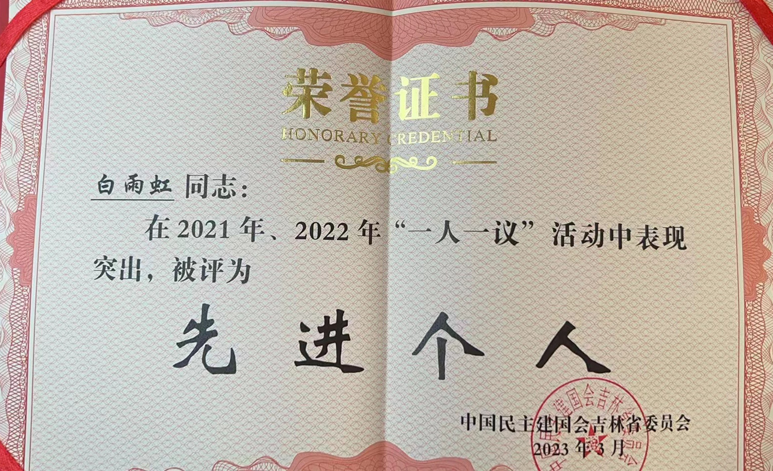 在民建支部主任白雨虹的带领下,民建长春光机所支部会员都认真履职,积极提交提案和社情民意,每年提交的提案和社情民意都在10篇以上,受到了民建省委和省直工委的高度评价。