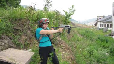 虽说电子竞技中的CS充满血腥和紧张,但在实战模拟的CS野战中可以说是我们训练中最轻松的一课。但依旧是满头大汗,气喘吁吁。CS野战虽说讲求的是配合和战术,但在训练中,少了一分惊险,多了一分乐趣,每个队员瞄准射击,有板有眼。放眼看去,还真以为是某军在进行军事演习。