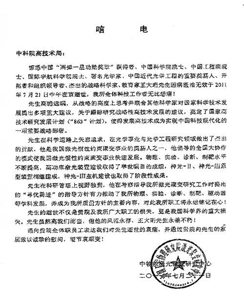 上一篇:日本滨松光子学株式会社北京办事处唁电