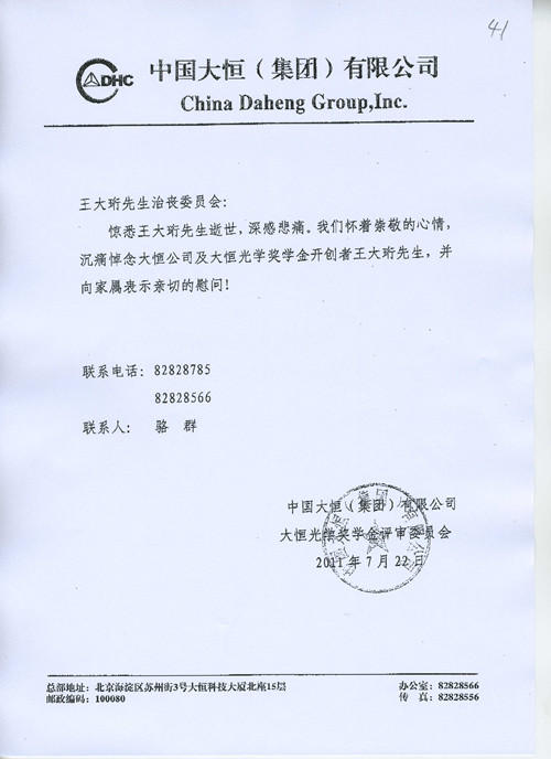 中国大恒集团有限公司唁电