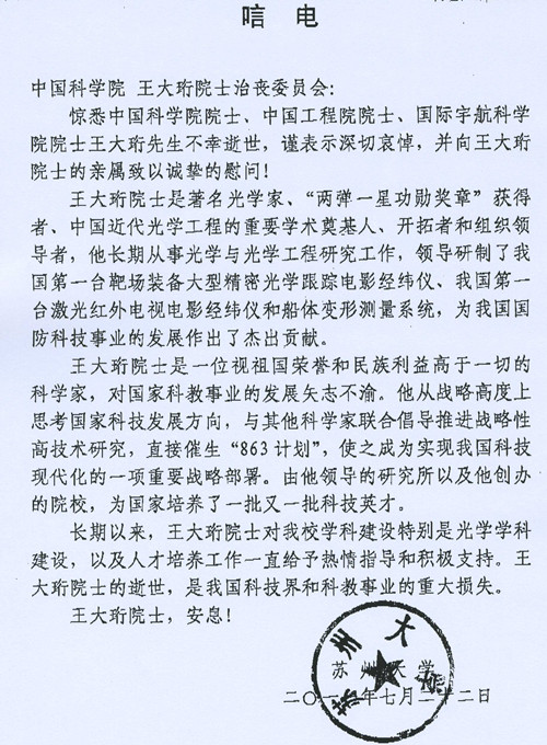苏州大学唁电