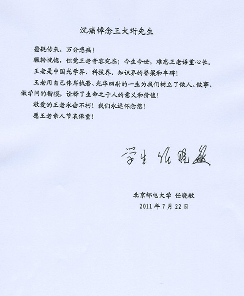 北京邮电大学任晓敏唁电