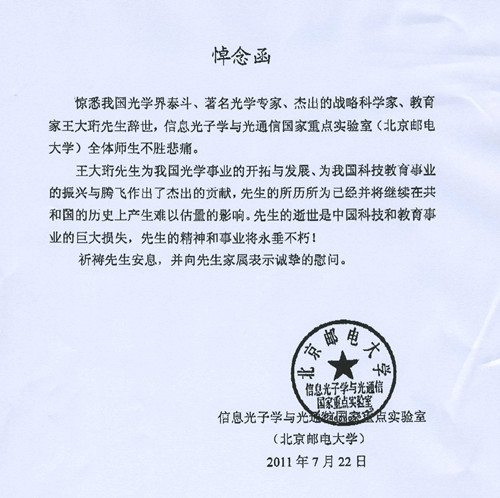 下一篇:北京邮电大学任晓敏唁电