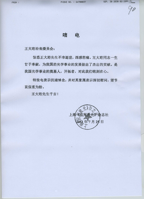 上一篇:-中国国际光电博览会(CIOE)唁电