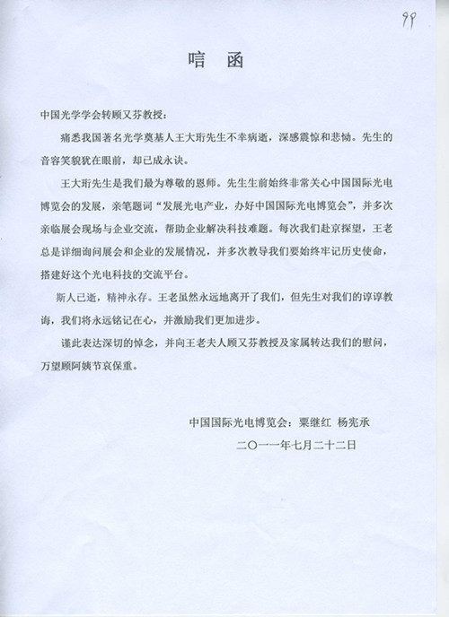 中国国际光电博览会粟继红、杨宪承 唁电