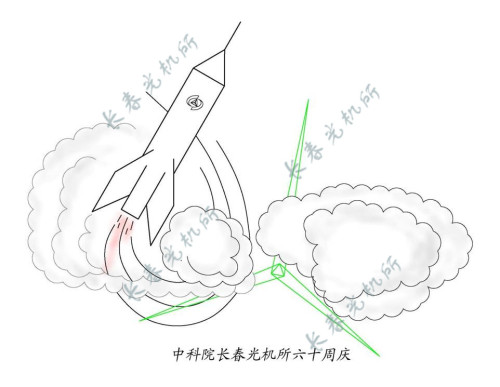 火箭表示长春光机所在航天事业上作出的突出贡献,表明长光人励精图治、开拓创新及载人航天精神;